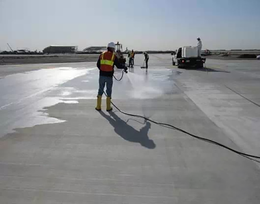 第二、表面在濕潤30~40分鐘后,當(dāng)腳下覺得變滑稠時(shí),用水霧狀噴灑地面;